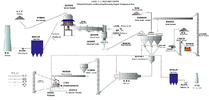 年產(chǎn)10000噸金屬鎂生產(chǎn)工藝流程設(shè)備配置:600×900鄂破機(jī)、250×1200細(xì)鄂式破碎機(jī)、3×60回轉(zhuǎn)窯、2.2×20米冷卻機(jī)、MQG2.4×8米球磨機(jī)、MQG1.5×5.7球磨機(jī)、MG2233煤磨機(jī)、HL300斗式提升機(jī)、煤氣發(fā)生爐3米、壓球機(jī)、豎式預(yù)熱器、G×400螺旋輸送機(jī)。