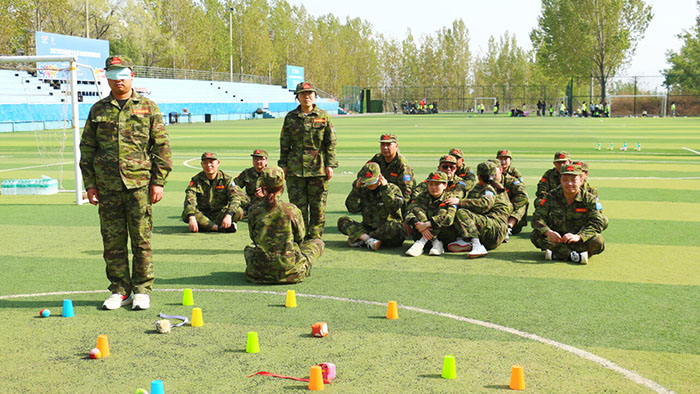 在【沙場點(diǎn)兵】項(xiàng)目,要求每個隊(duì)選出一個總指揮做將軍,一個協(xié)調(diào)者做軍師,剩余伙伴作為士兵。設(shè)定將軍起著總指揮的作用,但無法看見戰(zhàn)場的具體情況,其命令需由軍師來傳達(dá)。而軍師則只能用肢體語言告訴將軍該如何部署,士兵們則需要蒙著眼睛聽將軍命令,從而實(shí)現(xiàn)在沙場前進(jìn)、攻擊。當(dāng)規(guī)則定好,每個人所要做的就是各司其職。有人規(guī)劃部署,有人上傳下達(dá),有人依命令行事,雖然有理解錯誤、聽錯命令的情況發(fā)生,大家還是玩得不亦樂乎。在這個項(xiàng)目中,大家感悟到正確溝通的重要性。