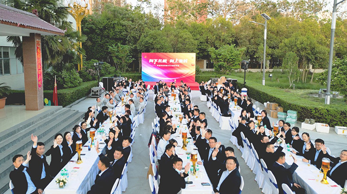 隨著一陣陣歡呼聲,家宴正式拉開序幕,董事長楚科奇及集團(tuán)管理層共同登臺(tái)祝酒,為這個(gè)美好的歡聚時(shí)刻,與所有家人舉杯慶祝,F(xiàn)場華燈璀璨,笙歌高揚(yáng),家人滿座,笑語滿堂。