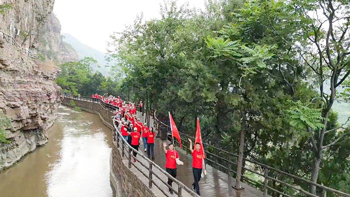 4月29日清晨,迎著山間的朝露與鳥鳴,全體學(xué)員前往太行山大峽谷,開展了一場(chǎng)別開生面的觀摩教學(xué)。行走在巍巍太行山間,在桃花谷、太行天路中,感受“美太行”的美麗鄉(xiāng)村建設(shè)的新時(shí)代畫卷,探訪山區(qū)人民自力更生、艱苦創(chuàng)業(yè)的致富精神。